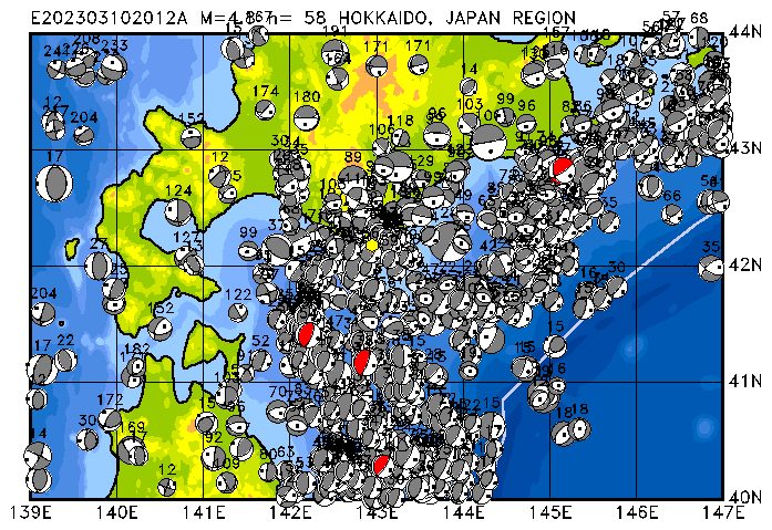284 HOKKAIDO, JAPAN REGION PDEW h= 37 M=6.0 E202303280918A