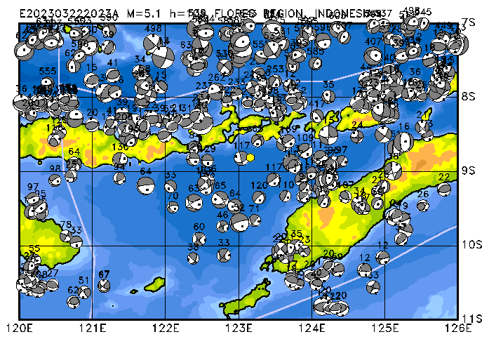 245 FLORES REGION, INDONESIA PDEW h=109 M=5.1 E202303222023A
