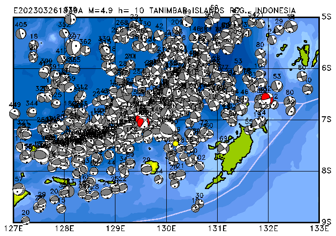 273 TANIMBAR ISLANDS REG., INDONESIA PDEW h= 10 M=4.9 E202303261839A