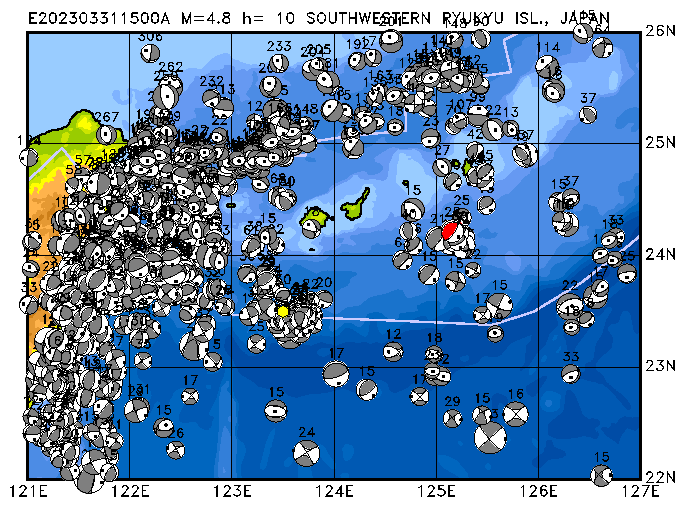 302 SOUTHWESTERN RYUKYU ISL., JAPAN SWEQ h= 10 M=4.8 E202303311500A