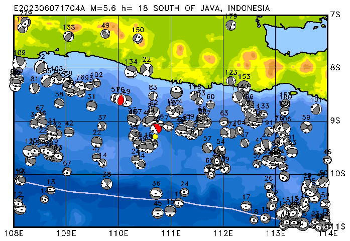 084 SOUTH OF JAVA, INDONESIA PDEW h= 18 M=5.6 E202306071704A
