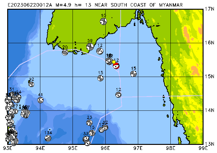 254 NEAR SOUTH COAST OF MYANMAR PDEW h= 14 M=4.9 E202306220012A
