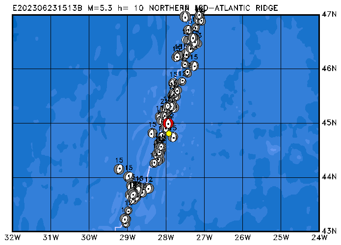 281 NORTHERN MID-ATLANTIC RIDGE PDEW h= 10 M=4.4 E202306232050B