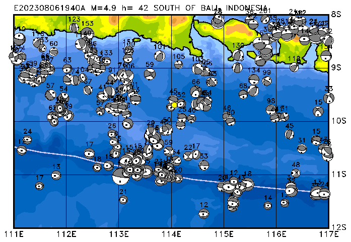070 SOUTH OF BALI, INDONESIA PDEW h= 43 M=4.9 E202308061940A