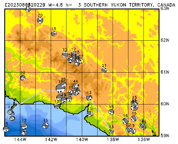 071 SOUTHERN YUKON TERRITORY, CANADA PDEW h= 3 M=4.8 E202308062022B