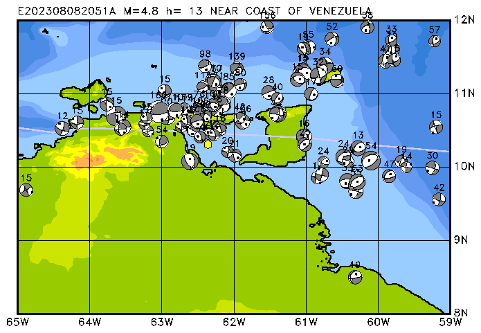 086 NEAR COAST OF VENEZUELA PDEW h= 13 M=4.8 E202308082051A