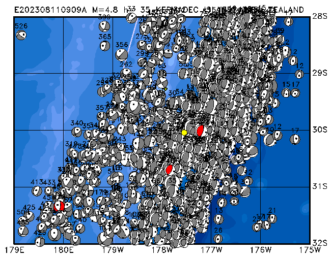 013 SOUTH OF KERMADEC ISLANDS PDEW h= 10 M=4.9 E202308012350A