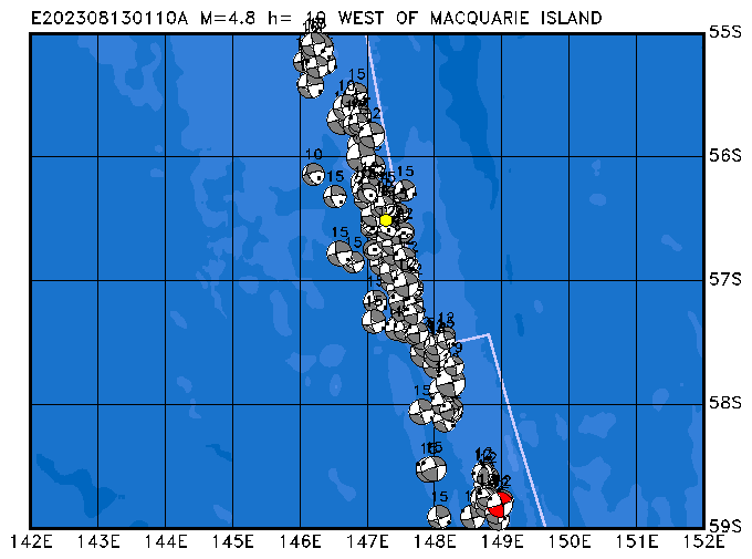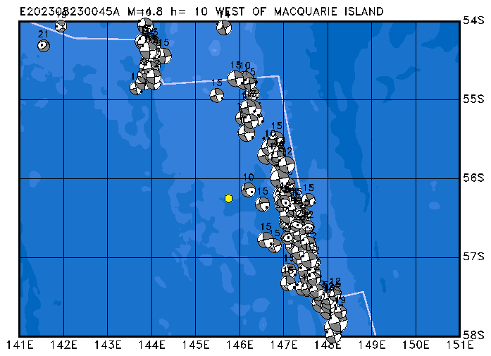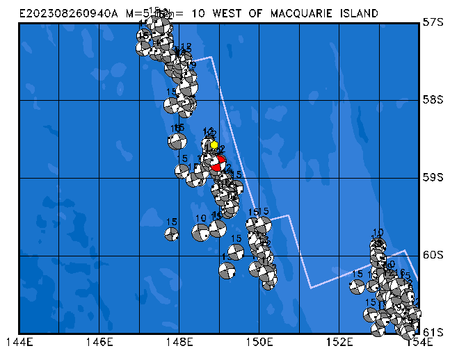 219 WEST OF MACQUARIE ISLAND PDEW h= 10 M=5.1 E202308260940A