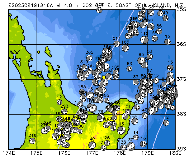 170 OFF E. COAST OF N. ISLAND, N.Z. PDEW h=203 M=4.8 E202308191816A
