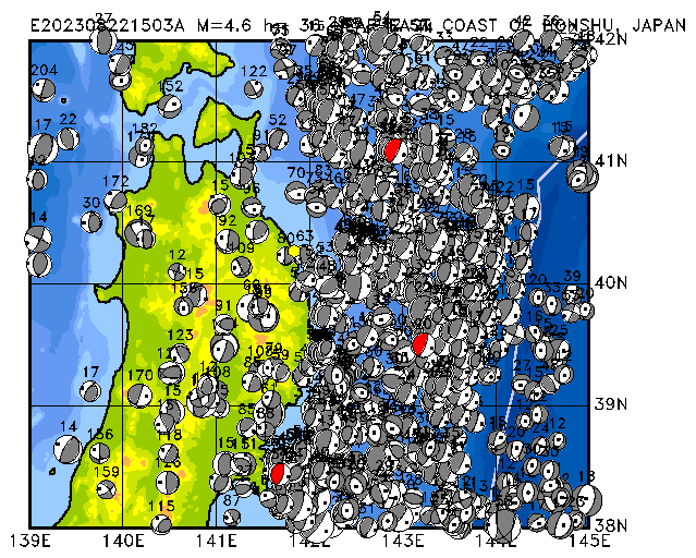 186 NEAR EAST COAST OF HONSHU, JAPAN PDEW h= 36 M=4.6 E202308221503A