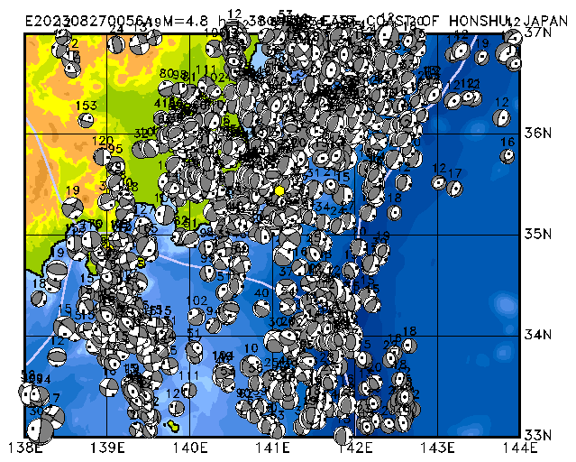 224 NEAR EAST COAST OF HONSHU, JAPAN PDEW h= 39 M=4.8 E202308270056A