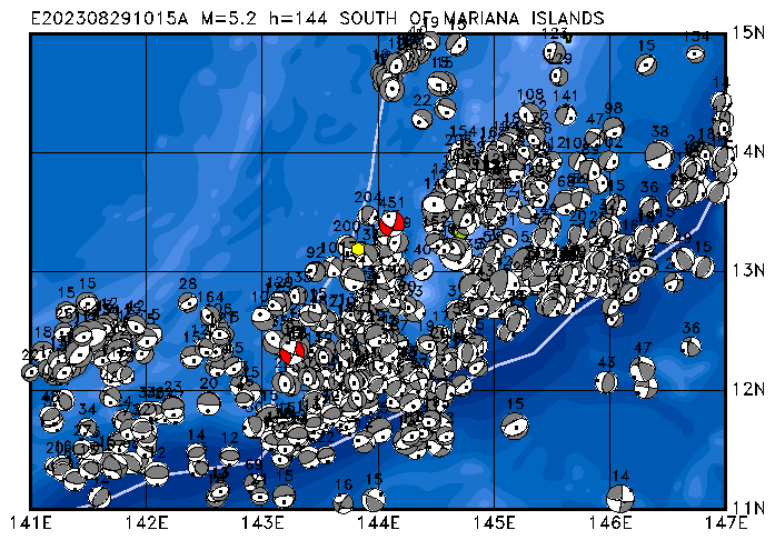 242 SOUTH OF MARIANA ISLANDS PDEW h=145 M=5.2 E202308291015A