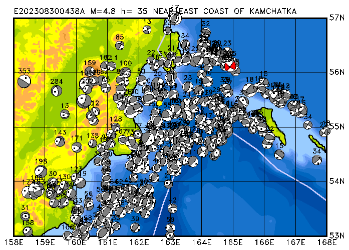 245 NEAR EAST COAST OF KAMCHATKA PDEW h= 35 M=4.8 E202308300438A