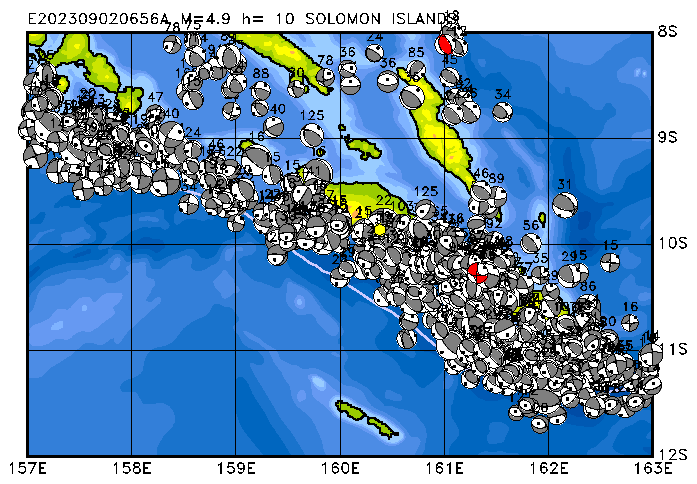010 SOLOMON ISLANDS PDEW h= 10 M=4.9 E202309020656A