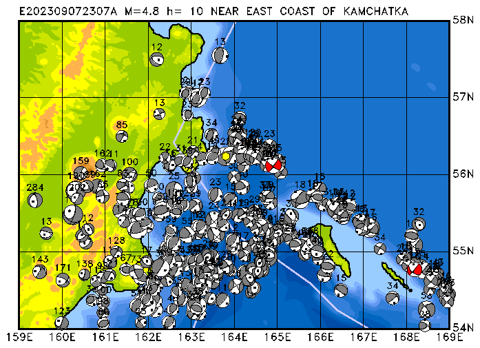 061 NEAR EAST COAST OF KAMCHATKA PDEW h= 10 M=4.8 E202309072302A