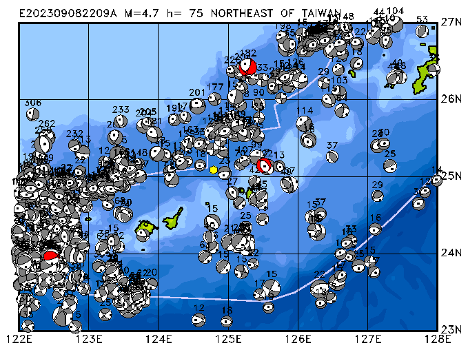 079 NORTHEAST OF TAIWAN PDEW h= 76 M=4.7 E202309082209A