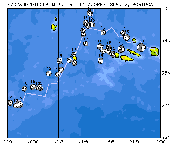 277 AZORES ISLANDS, PORTUGAL PDEW h= 14 M=5.0 E202309291905A