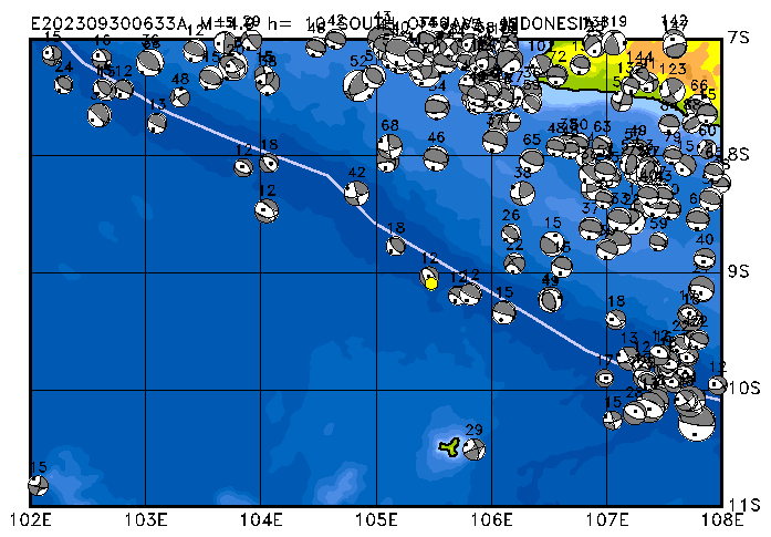 282 SOUTH OF JAVA, INDONESIA PDEW h= 10 M=4.9 E202309300633A