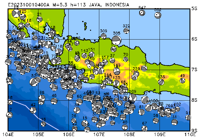 001 JAVA, INDONESIA PDEW h=113 M=5.3 E202310010400A