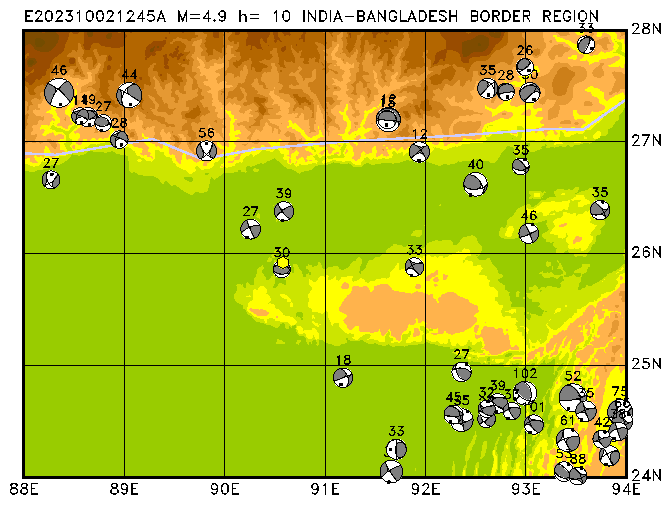 016 INDIA-BANGLADESH BORDER REGION PDEW h= 10 M=4.9 E202310021245A