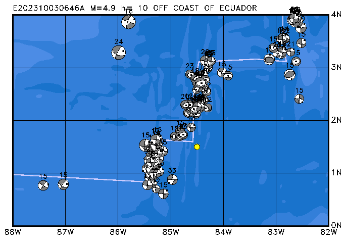022 OFF COAST OF ECUADOR SWEQ h= 10 M=4.9 E202310030646A