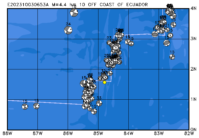 023 OFF COAST OF ECUADOR PDEW h= 10 M=4.4 E202310030653A