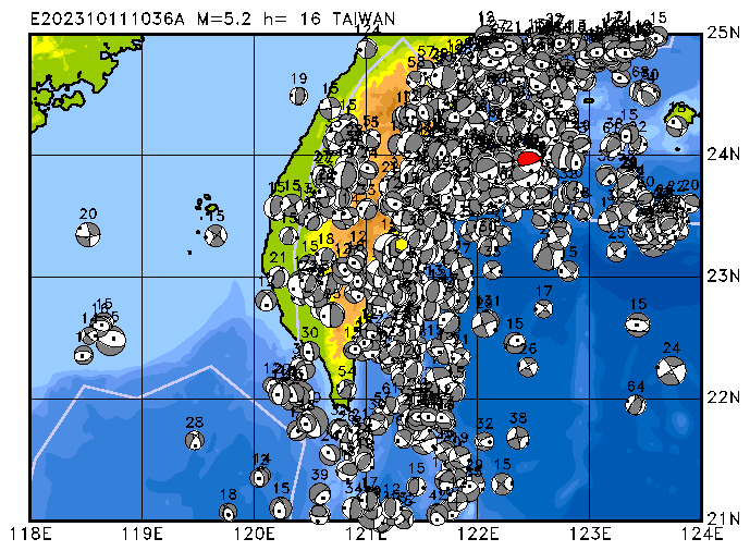 078 TAIWAN REGION PDEW h= 21 M=4.3 E202310050853A