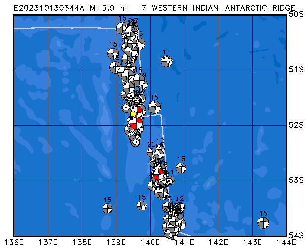 321 WEST OF MACQUARIE ISLAND PDEW h= 10 M=5.9 E202310260721A