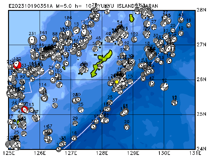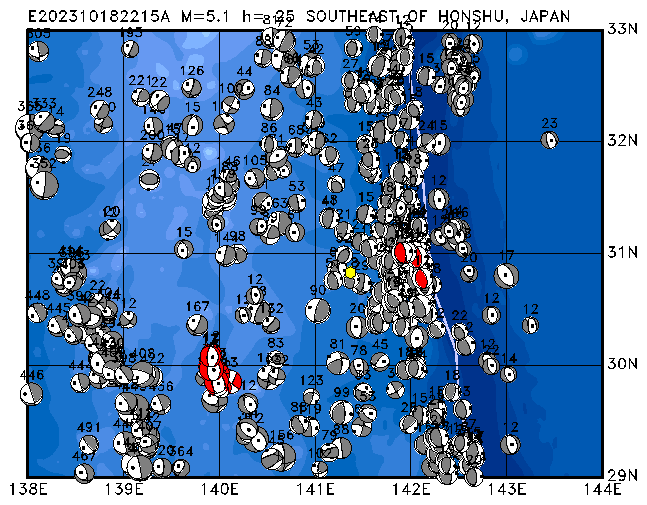 018 SOUTHEAST OF HONSHU, JAPAN PDEW h= 10 M=5.0 E202310021418A
