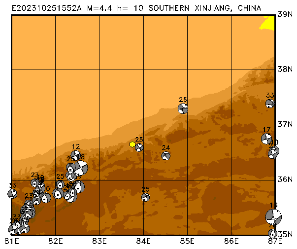 315 SOUTHERN XINJIANG, CHINA PDEW h= 10 M=4.4 E202310251552A