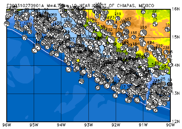 335 NEAR COAST OF CHIAPAS, MEXICO PDEW h= 10 M=4.7 E202310270901A