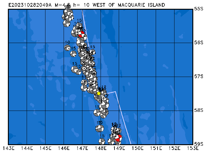 351 WEST OF MACQUARIE ISLAND PDEW h= 10 M=4.6 E202310282049A