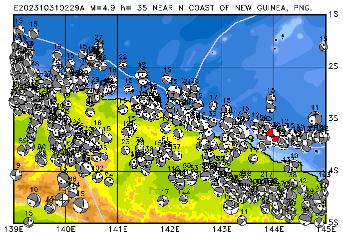 369 NEAR N COAST OF NEW GUINEA, PNG. PDEW h= 35 M=4.9 E202310310229A
