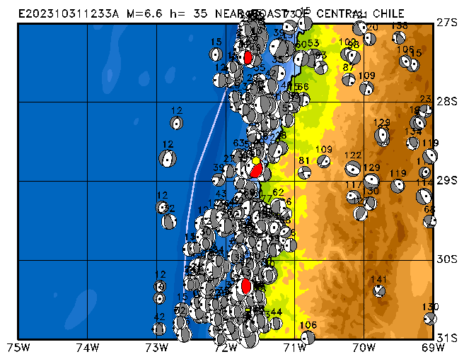 374 NEAR COAST OF CENTRAL CHILE PDEW h= 35 M=6.6 E202310311233A
