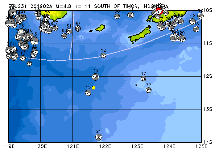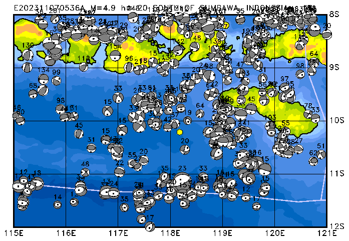 057 SOUTH OF SUMBAWA, INDONESIA PDEW h= 21 M=4.9 E202311070536A