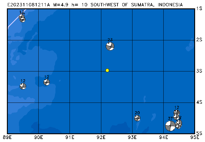 077 SOUTHWEST OF SUMATRA, INDONESIA PDEW h= 10 M=4.9 E202311081211A