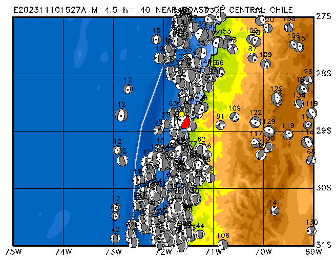 045 NEAR COAST OF CENTRAL CHILE PDEW h= 31 M=5.1 E202311061351A