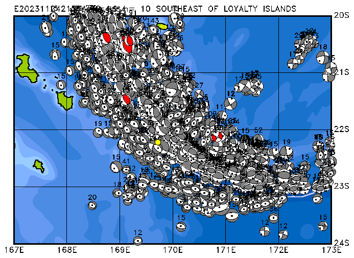 037 SOUTHEAST OF LOYALTY ISLANDS PDEW h= 10 M=4.5 E202311050550A