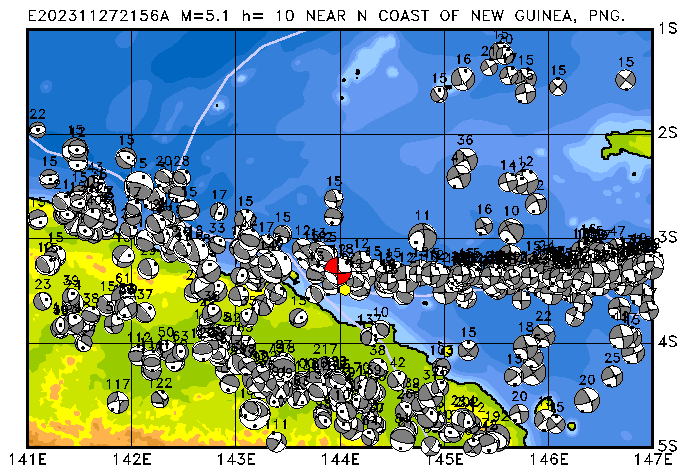281 NEAR N COAST OF NEW GUINEA, PNG. PDEW h=147 M=5.0 E202311250448A