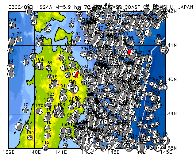 005 NEAR EAST COAST OF HONSHU, JAPAN PDEW h= 72 M=5.9 E202404011924A