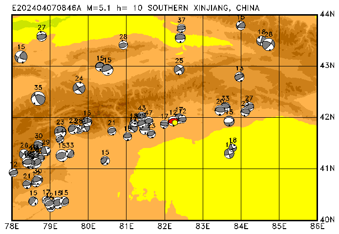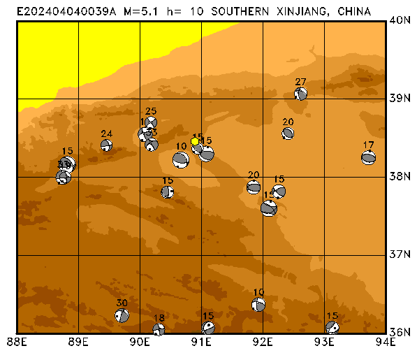 071 SOUTHERN XINJIANG, CHINA PDEW h= 10 M=5.1 E202404040039A