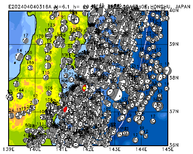 072 NEAR EAST COAST OF HONSHU, JAPAN PDEW h= 29 M=6.1 E202404040316A