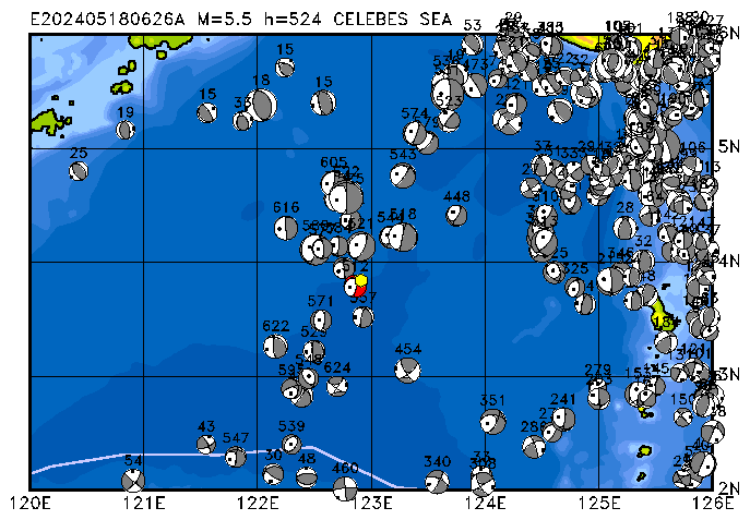 230 MINAHASSA PENINSULA, SULAWESI PDEW h=128 M=5.0 E202405220549A
