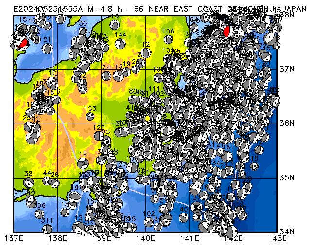 261 NEAR EAST COAST OF HONSHU, JAPAN PDEW h= 66 M=4.8 E202405251555A