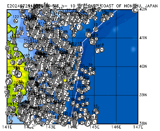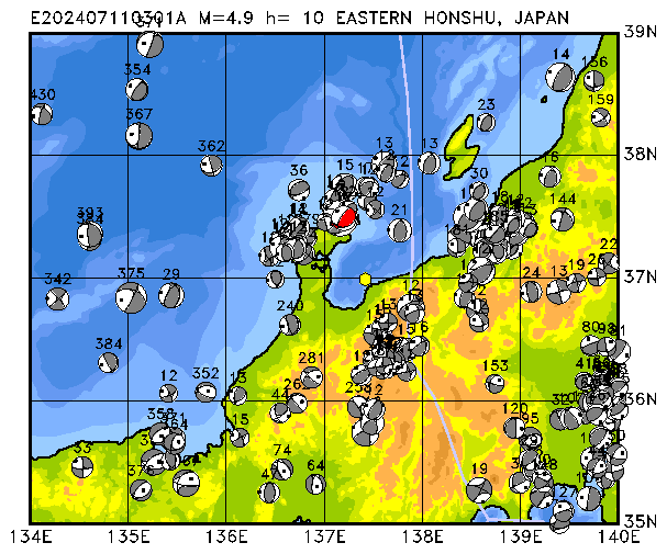 259 OFF EAST COAST OF HONSHU, JAPAN PDEW h= 10 M=5.3 E202407281013B