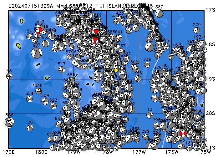 256 SOUTH OF FIJI ISLANDS PDEW h= 10 M=4.9 E202407280445A