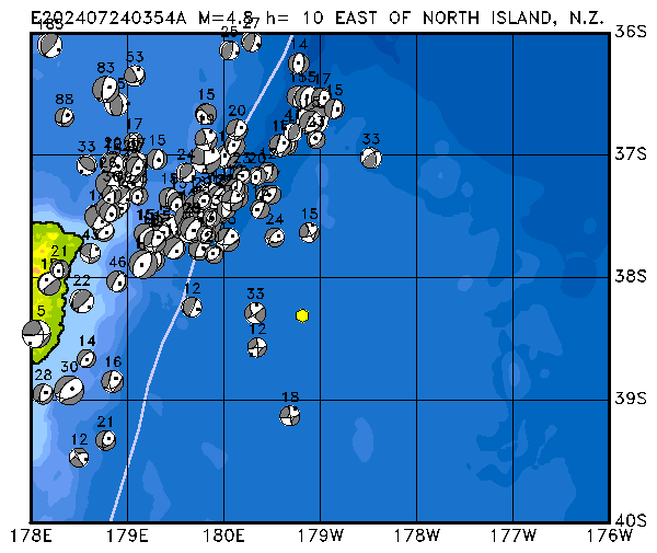 013 EAST OF NORTH ISLAND, N.Z. PDEW h= 10 M=4.8 E202407020917A