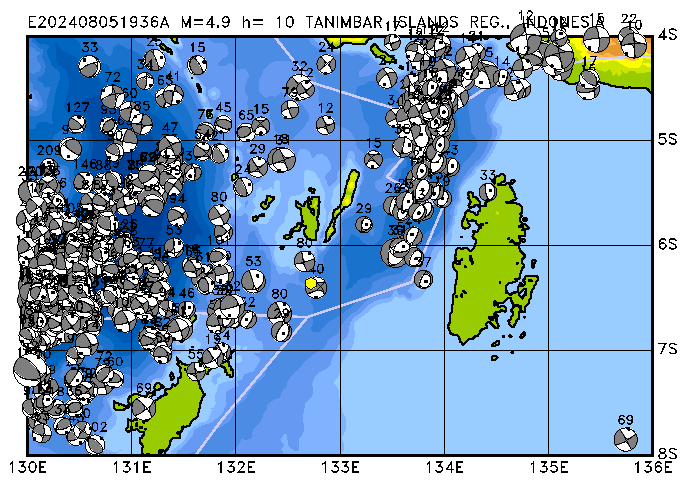 037 TANIMBAR ISLANDS REG., INDONESIA PDEW h= 10 M=4.9 E202408051936A
