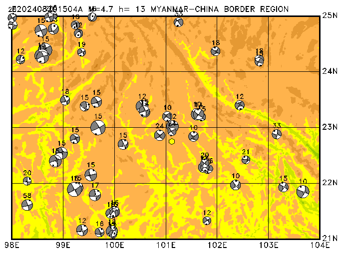 164 MYANMAR-CHINA BORDER REGION PDEW h= 13 M=4.7 E202408201504A