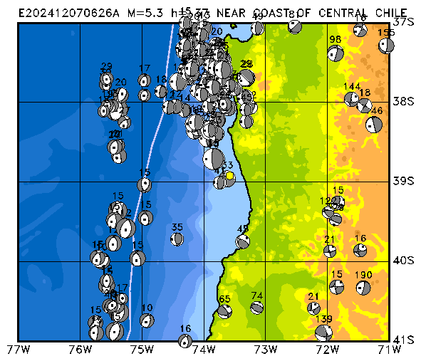 056 NEAR COAST OF CENTRAL CHILE PDEW h= 37 M=5.3 E202412070626A